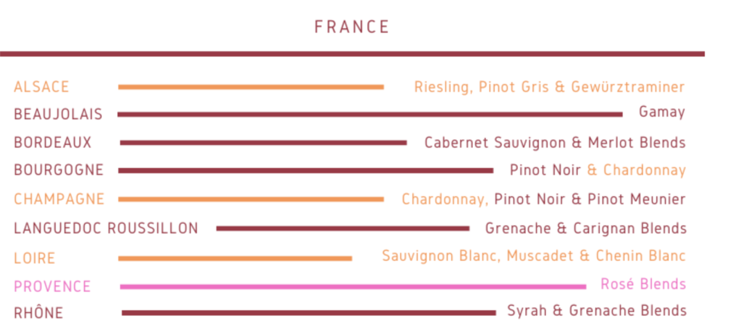 所以阅读旧世界的酒单,你需要对经典产区以及它出产的品种有一些基础的了解,比如,法国波尔多(Bordeaux)地区生产赤霞珠和梅洛,而勃艮第(Burgundy)大概率是黑皮诺和霞多丽,香槟地区则是我们熟悉的以霞多丽为底的气泡酒。