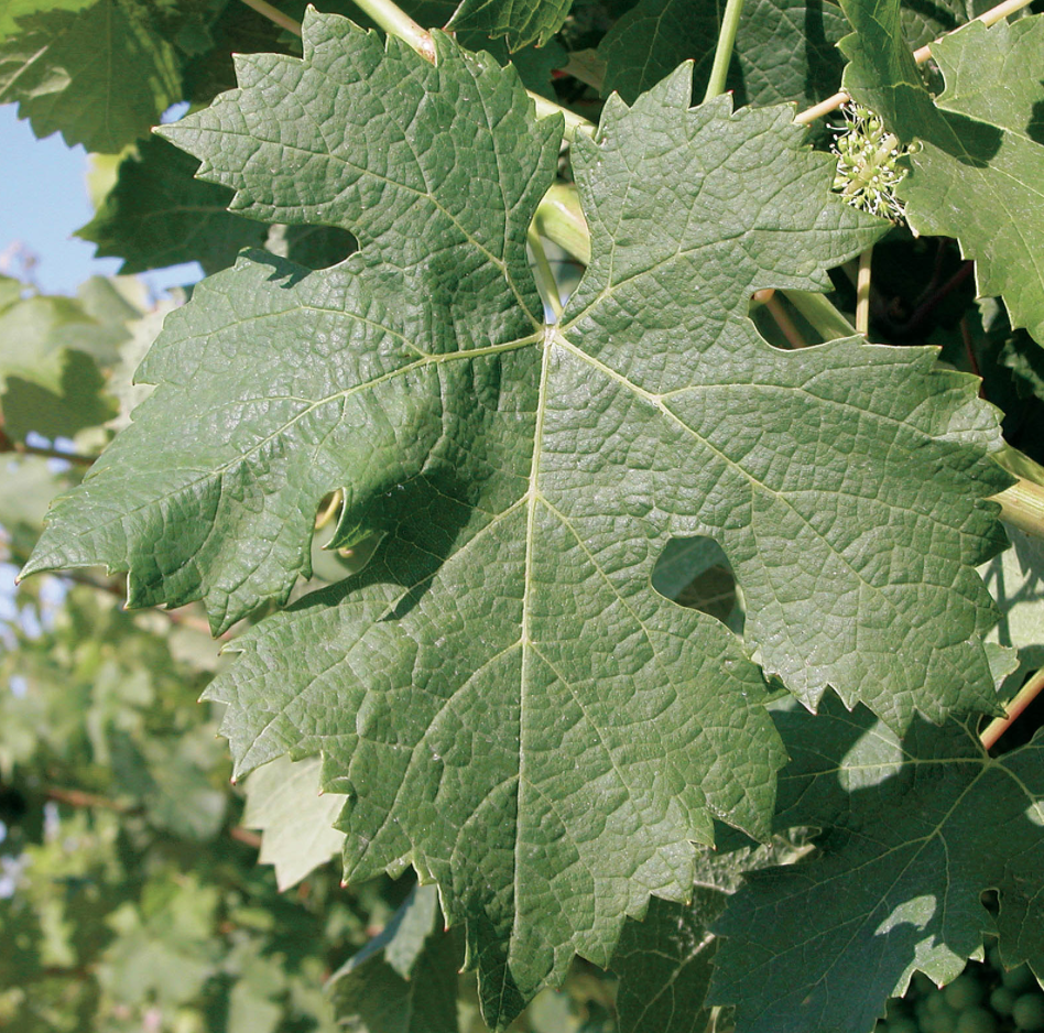 嫩叶呈浅绿色、边缘呈铜色。成叶色深有3-5个叶裂、深度中等呈U行。背面容貌稀疏。果实圆形粒小。品丽珠生命力十分旺盛,比赤霞珠的耐寒性更强,适合种植于石灰质黏土中,或者排水条件较好的沙质土壤里。架式应以中度及短剪枝为宜。品丽珠果实小,颜色较浅,成熟时间适中,容易完全成熟,但由于其发芽期和成熟期都比赤霞珠早一些,因而易受病虫害的侵扰。相较于赤霞珠,由于果皮较薄,且酸度较低,酒体也较轻,口感柔和。