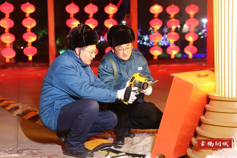 区工信局、市公安局钢城分局、区消防大队等工作人员,不间断在场内巡逻防控,将“人防”同“物防”、“技防”相结合,在保障市民安全的同时,随时排查、处置安全隐患,保障灯会展安全稳定运行。