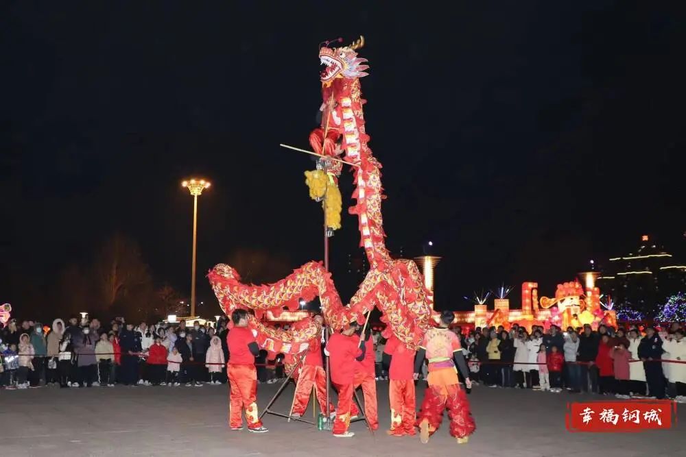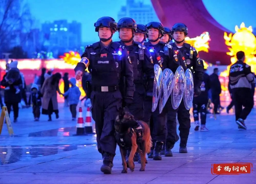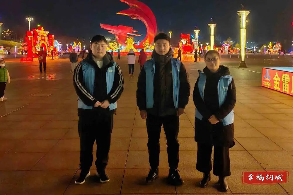 流光溢彩的花灯照亮钢城夜晚,在灯会展熙熙攘攘的人潮中,“守护人”目光坚毅、步伐坚定,用责任筑牢平安防线,他们的身影汇成了一道道亮丽的风景。