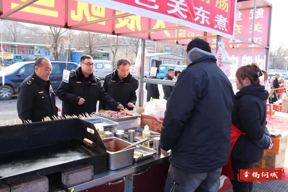 区城管局的执法人员对流动摊贩、乱停乱放等问题及时进行制止和疏导,并加强保洁工作,全力做到“日产日清”;区交警大队民警指挥疏导交通、引导车辆绕行,为市民安全、畅通、有序出行保驾护航;区市场监管局的工作人员加强对食品经营摊位的检查,督促摊主规范操作,确保食品安全……