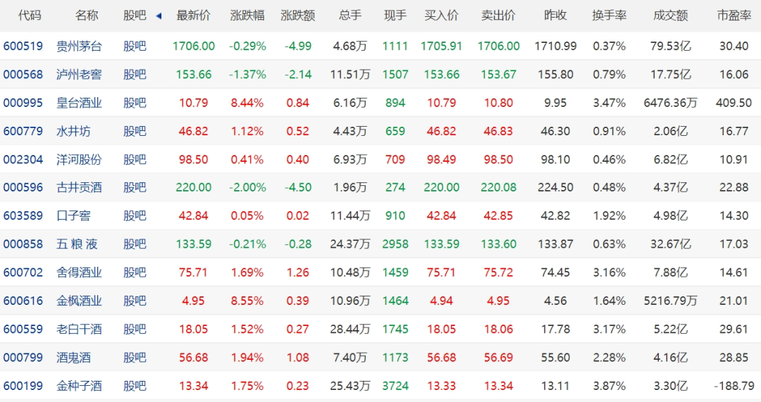 【白酒股市】2月18日白酒股市一览表