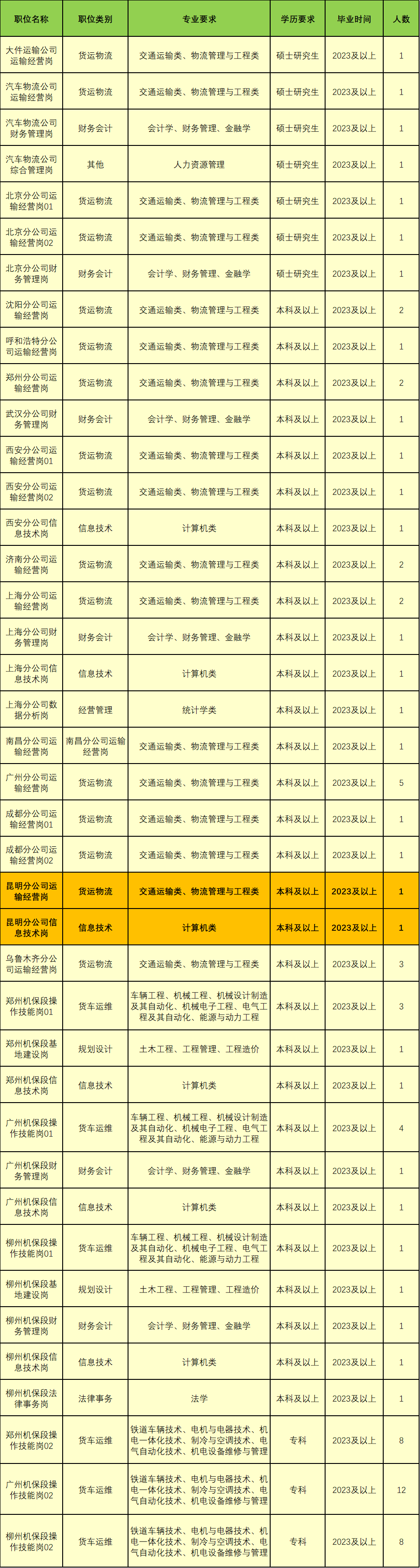 中铁特货物流股份有限公司根据企业发展需要,拟招聘普通高等院校毕业生,具体事宜公告如下: