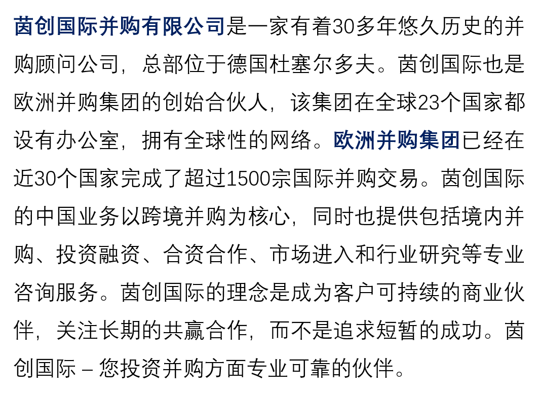 上述图片与项目内容无关。该公司股东计划出售全部股份。如果您对收购该公司感兴趣,或是有其他投资、并购、合作方面的需求,请与我们联系。