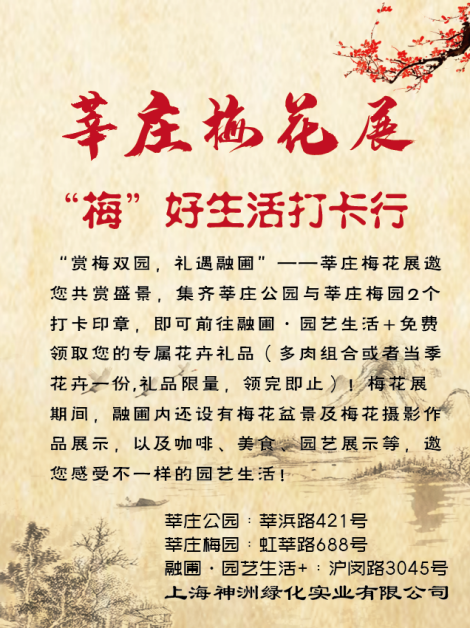作为文化习俗和品牌,梅花展一直深受市民喜爱。2月18日,莘庄梅展即将启幕,今年的梅展又有新变化,位于颛桥镇的融圃园艺生活+增设分会场,将大大方便周边的市民群众打卡赏梅。