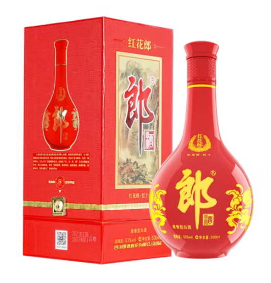 产品特点:红花郎是郎酒中端核心大单品,红花郎10 中名字“10”代表的也不是年份,而是一个档次。