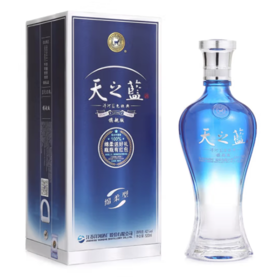 产品特点:天之蓝颜色清澈透明,以窖香、糟香、粮香为主。入口口感柔、顺、滑、黏、甜,夏天喝像凉爽的清风,冬天喝像温热的热流,依靠这种口感,天之蓝打动了很多消费者。