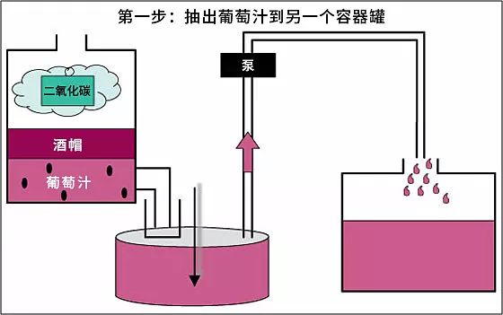 酿酒师将发酵罐中的葡萄汁抽干转移到另一个发酵罐中,只剩下酒帽在原先的酒罐中,然后将转移后的葡萄汁再次泵回原酒罐,淋到酒帽上,同压酒帽一样,倒罐并回混也是种萃取效果很强的方法,所以在发酵期间,酿酒师通常一共只需进行一到两次即可,此外,倒罐并回混有利于散热。