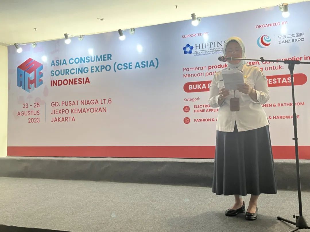 8月23日上午9:30,印尼展开幕式在雅加达JI EXPO正式举行。印尼中小企业发展部(PPKUKM)部长助理Mrs. Ety Syartika、印尼全国房东及零售商协会(HIPPINDO) 执行总裁FLORA(代为BUDIHARDJO主席发言)先后致辞,回顾了多年雅加达与中国各地政府之间的互动,也欢迎更多的企业来拓展印尼市场。