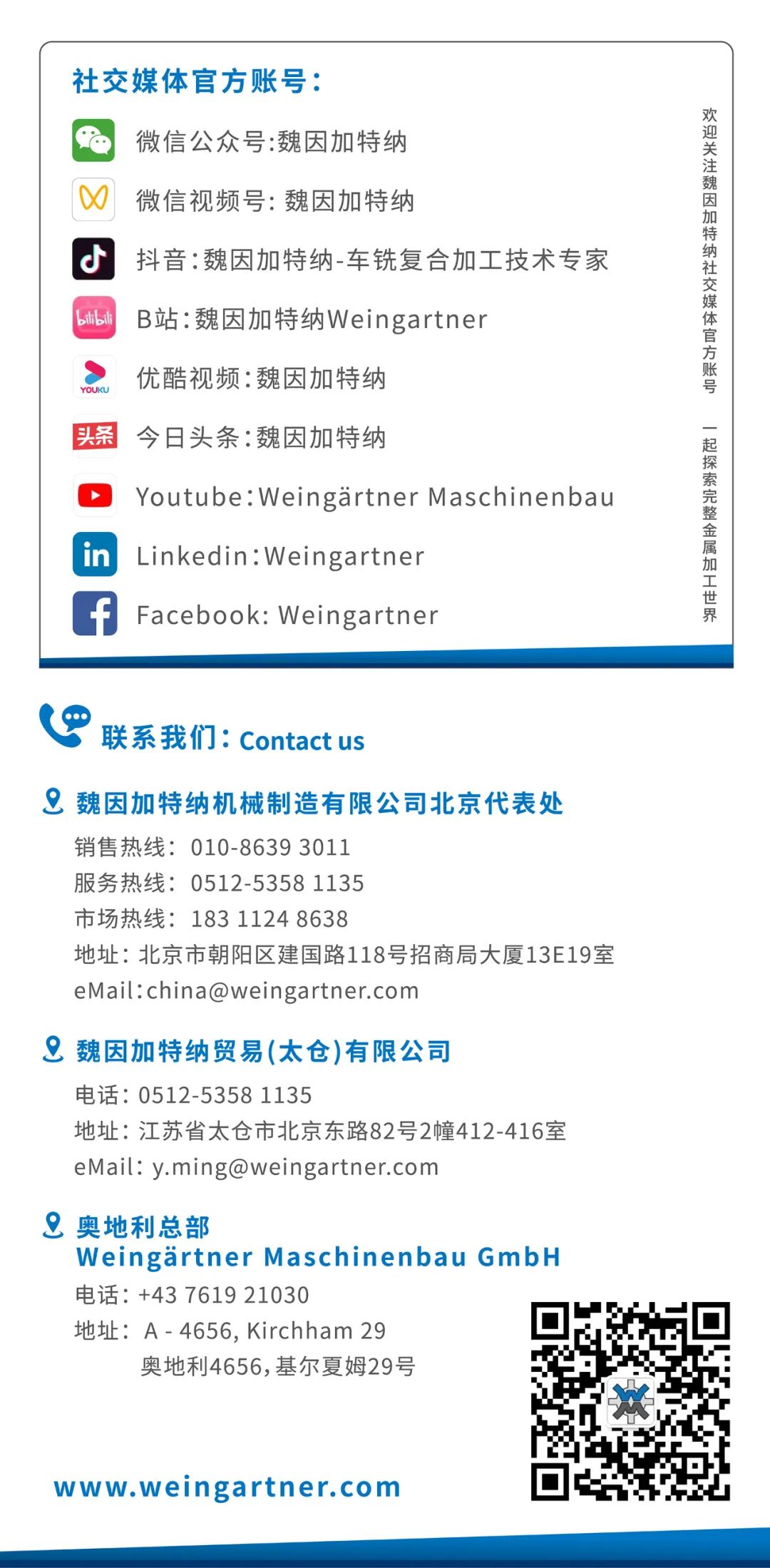 魏因加特纳市场部:手机+86 18311248638 邮箱cherryli@weingartner.com