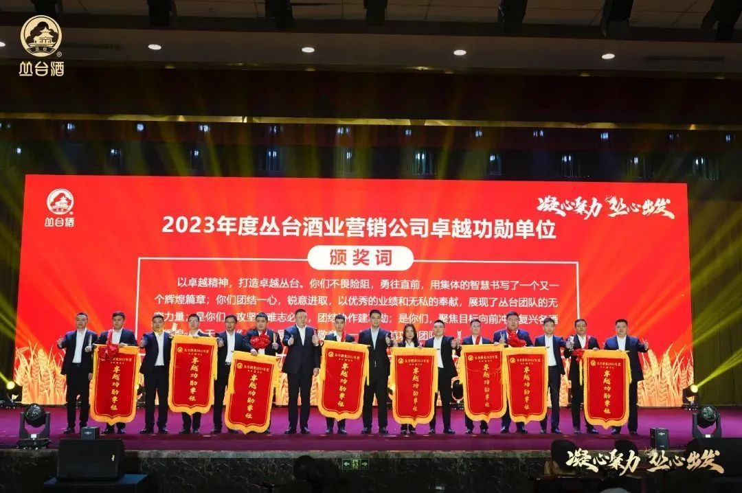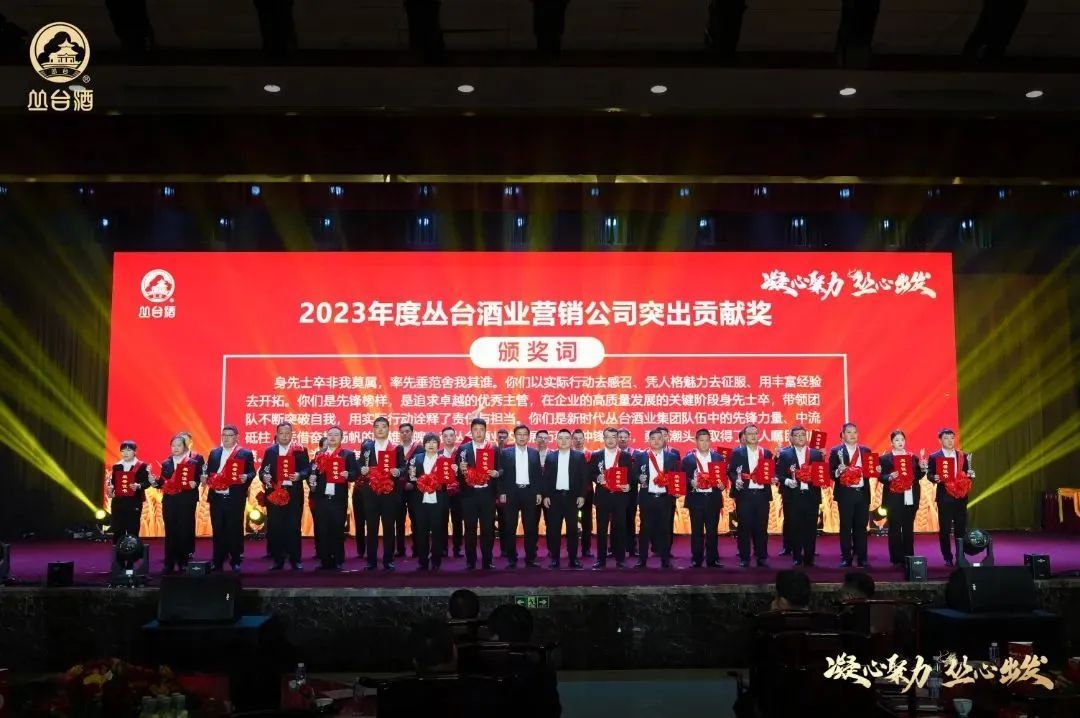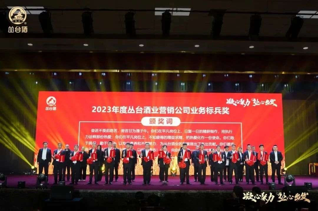 作为本次大会的重要议程之一,为表彰先进,树立标杆,激发干劲,大会举办了隆重的2023丛台酒业营销有限公司员工表彰仪式,共评选出业务标兵奖、突出贡献奖、卓越功勋单位、增长标兵单位、营销赋能单位等五个奖项。