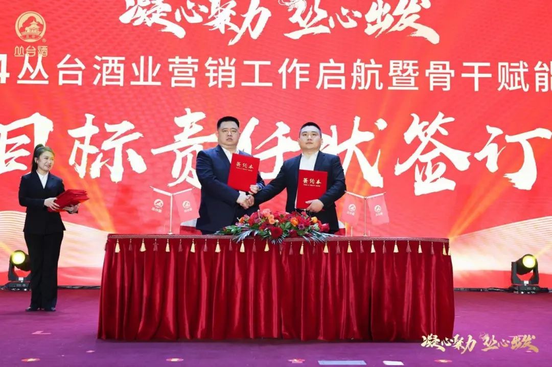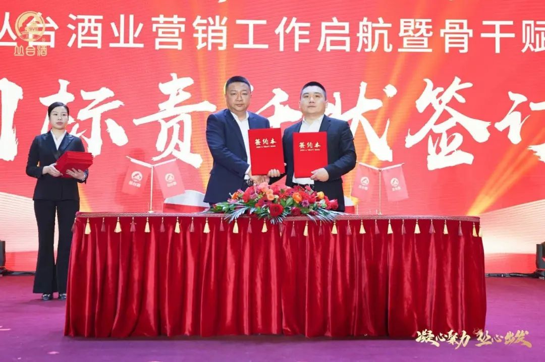 目标决定未来,起步就要冲刺。在目标责任状签订仪式期间,丛台酒业营销有限公司营销总监李丽宾与公司各模块负责人签订目标责任状,并带领团队、各大区及职能各部门负责人代表领诵企业训导词。