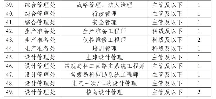 (2)副科级岗位:报名人员为副科级的,对任职年限不作要求;报名人员为一般员工的,需在主管/专工级岗位工作满3年及以上。