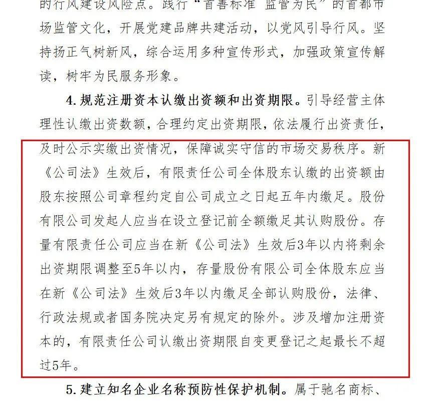 其中,有一条对之前公司注册资本的认缴作出了具体的规定:(该文件里的存量公司指的就是之前已经成立的公司)