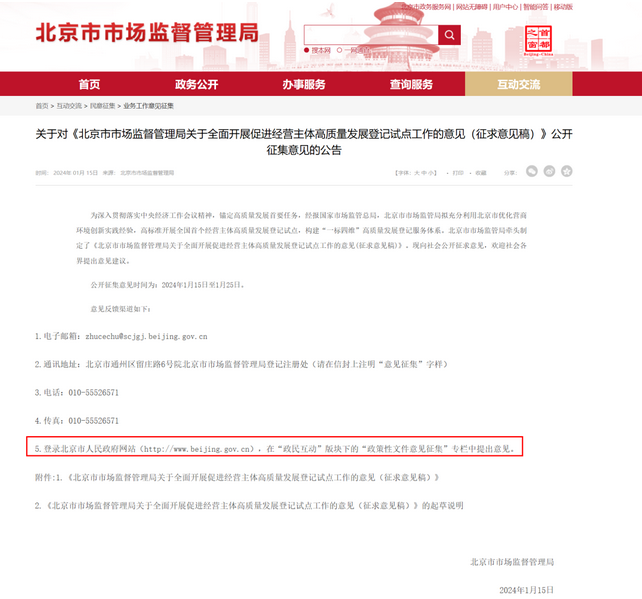 近日,北京市市场监管局发布《关于全面开展促进经营主体高质量发展登记试点工作的意见(征求意见稿)》。