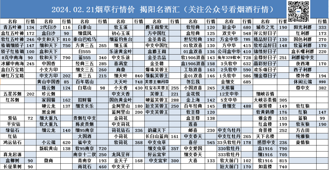 ☀ ,致力于发布揭阳当日行情价。点击上方名酒汇关注每天行情