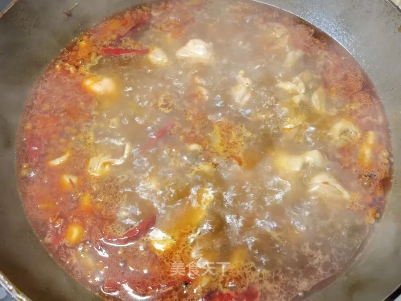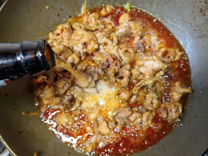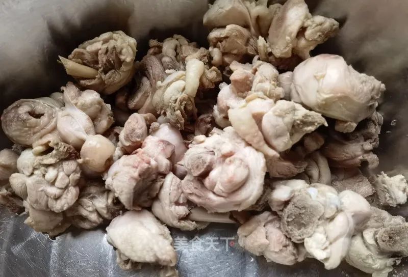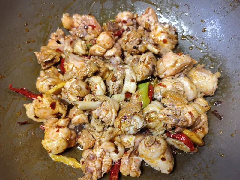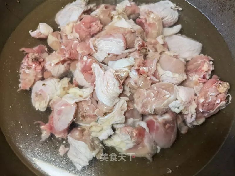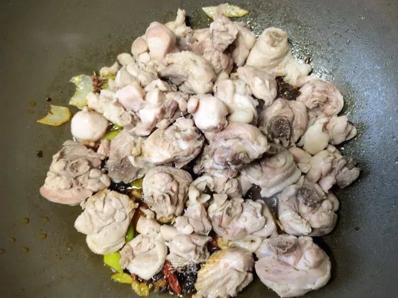 10. 倒入鸡块。