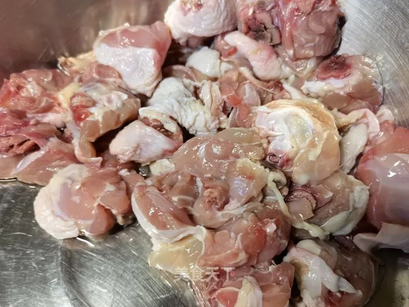3. 鸡腿剁小块,洗净血水。