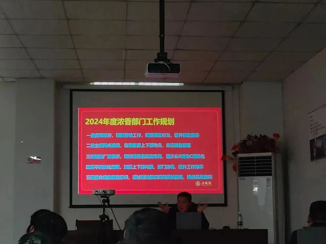 会上销售总监蒋宇对2023年公司浓香部门整体工作进行了复盘总结,查找问题、分析问题、解决问题。并对2024年公司浓香部门的规划做了安排。重点强调2024年将在团队建设、销售人员素养、网点拓展、消费者培育上下狠功夫。夯实品牌的市场根基。