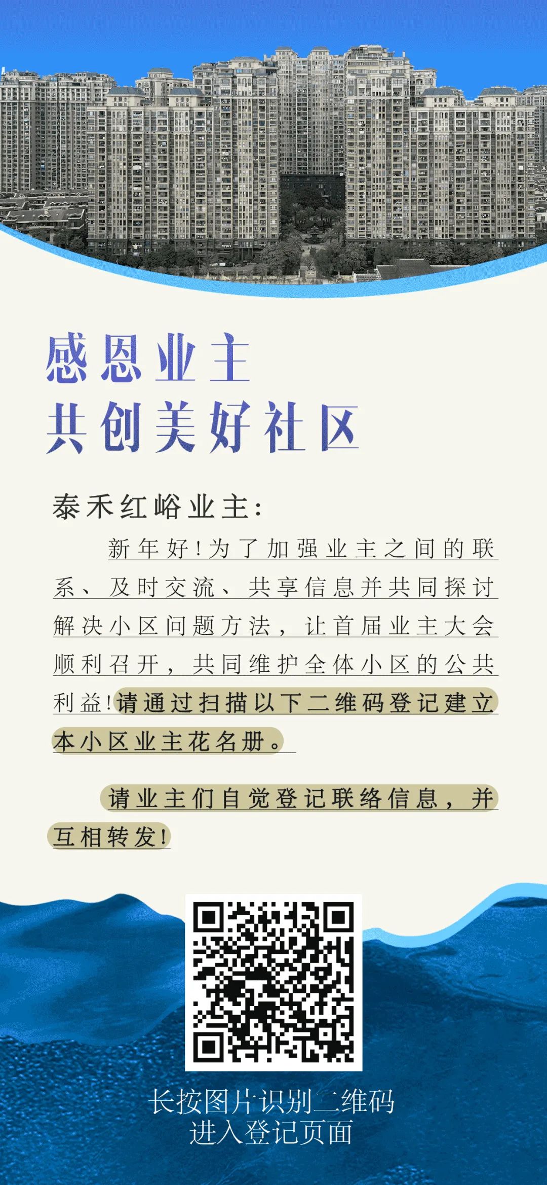 上门登记时间及固定点位将另行通知,以本号、正能量群、业主群通知为准!