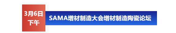 同期还将举办《第六届SAMA增材制造陶瓷论坛》。届时,我司研发总监周飞将在论坛发表《光固化与熔融沉积陶瓷3D打印技术》的演讲,欢迎您到场交流