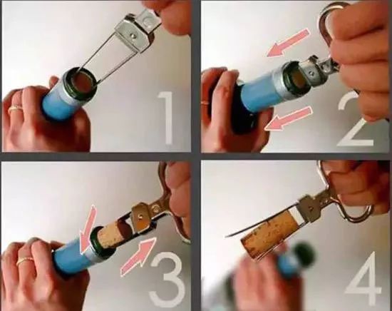 老酒开瓶器没有螺旋,只有两只长短不一的夹脚,操作也比较简单。老酒开瓶器的具体使用步骤如下: