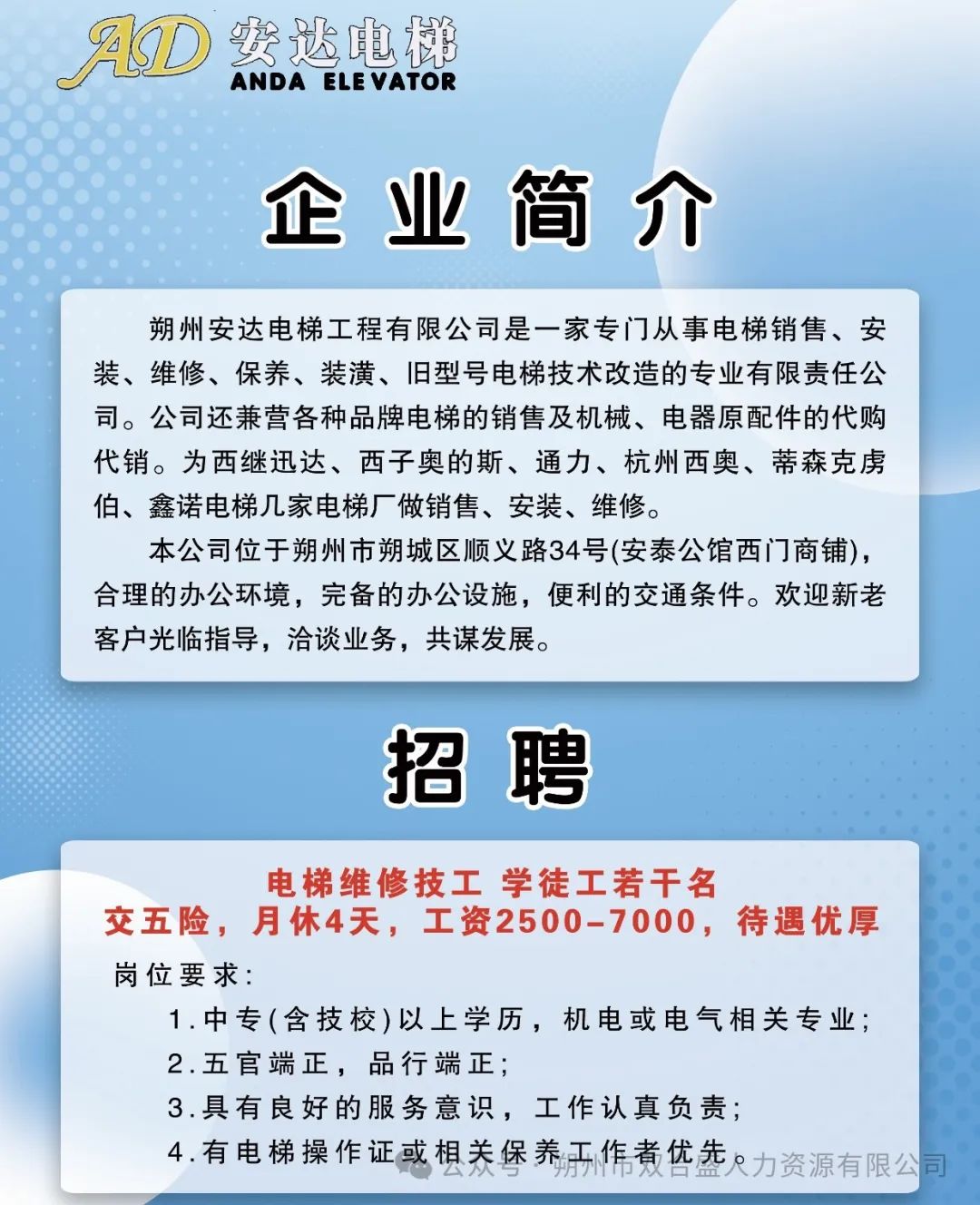 现招聘电梯维修技工 学徒工若干名