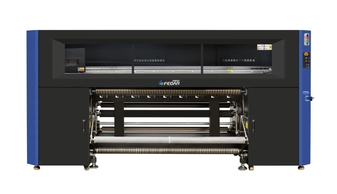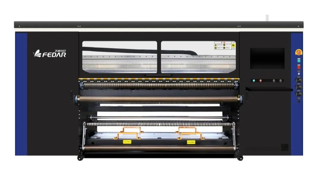 飞蝶纺印也参加了此次大展,带去了精心研发的工业数码印花机——开拓者FD1924S和FD61916E,以及广受好评的经典15头高端数码印花机——FD51915E。