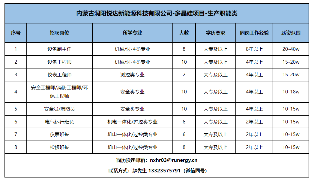 三、多晶硅招聘岗位