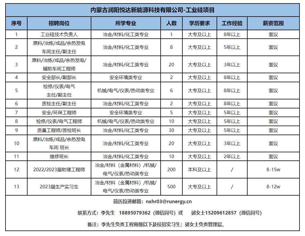 二、工业硅招聘岗位