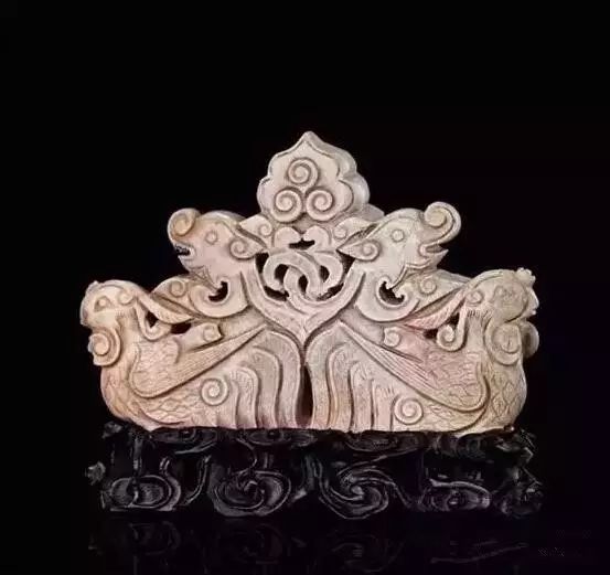 明 火烧玉龙凤纹笔架