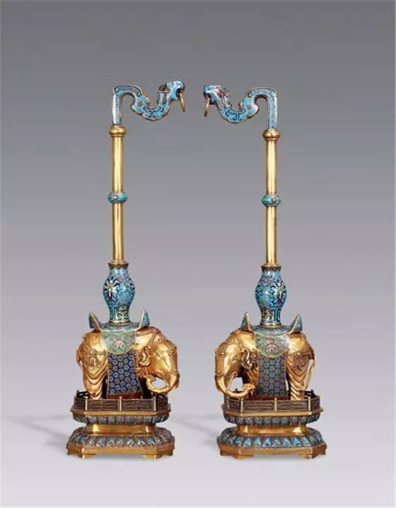 清乾隆 铜胎掐丝珐琅莲纹笔架