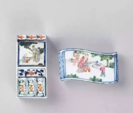清代 粉彩人物纹墨床 笔架