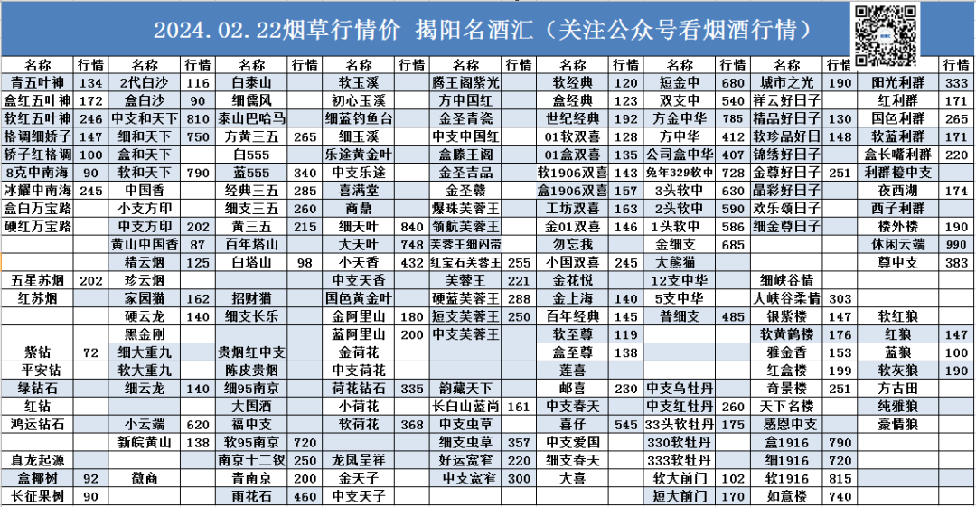 ☀ ,致力于发布揭阳当日行情价。点击上方名酒汇关注每天行情