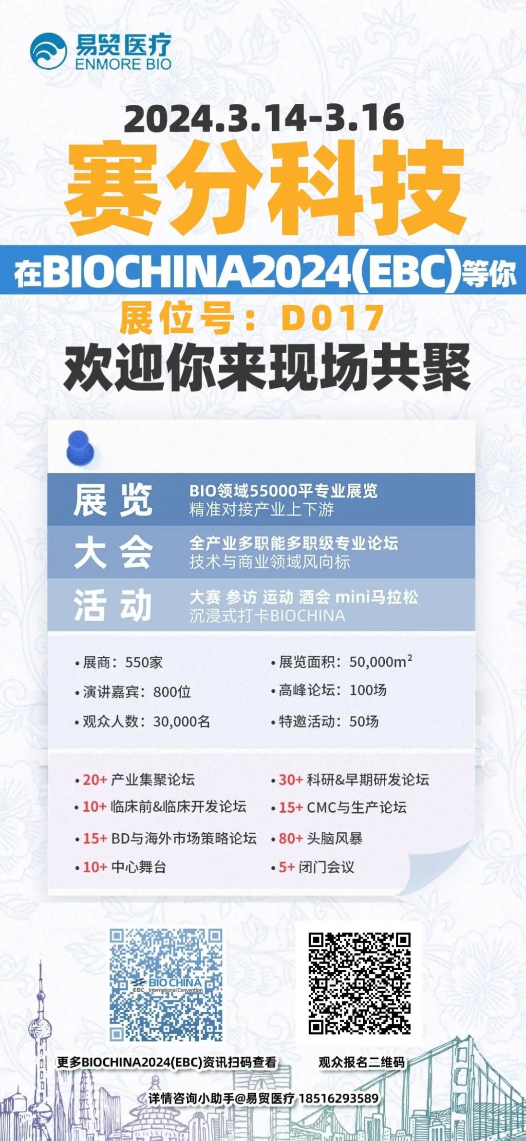 此外,赛分科技冠名了3月15日下午的“抗体产业聚焦临床更多可能性与更多市场空间”专场,由赛分科技创始人黄学英博士作报告分享,与行业同仁探讨抗体领域的发展。