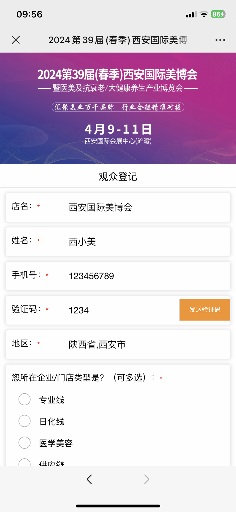 2、关注“西安国际美博会”公众号,回复“参观直通车”预定座位;