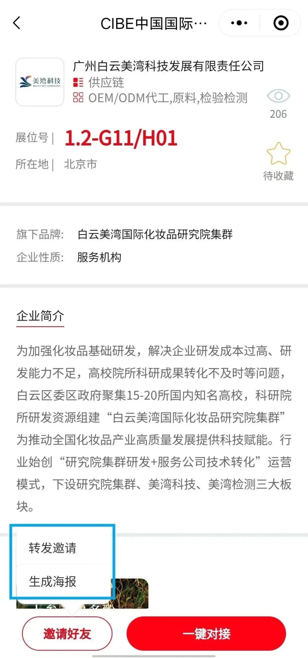 点击【邀请好友】-【转发邀请】,可将带有该展商信息的小程序分享给好友。