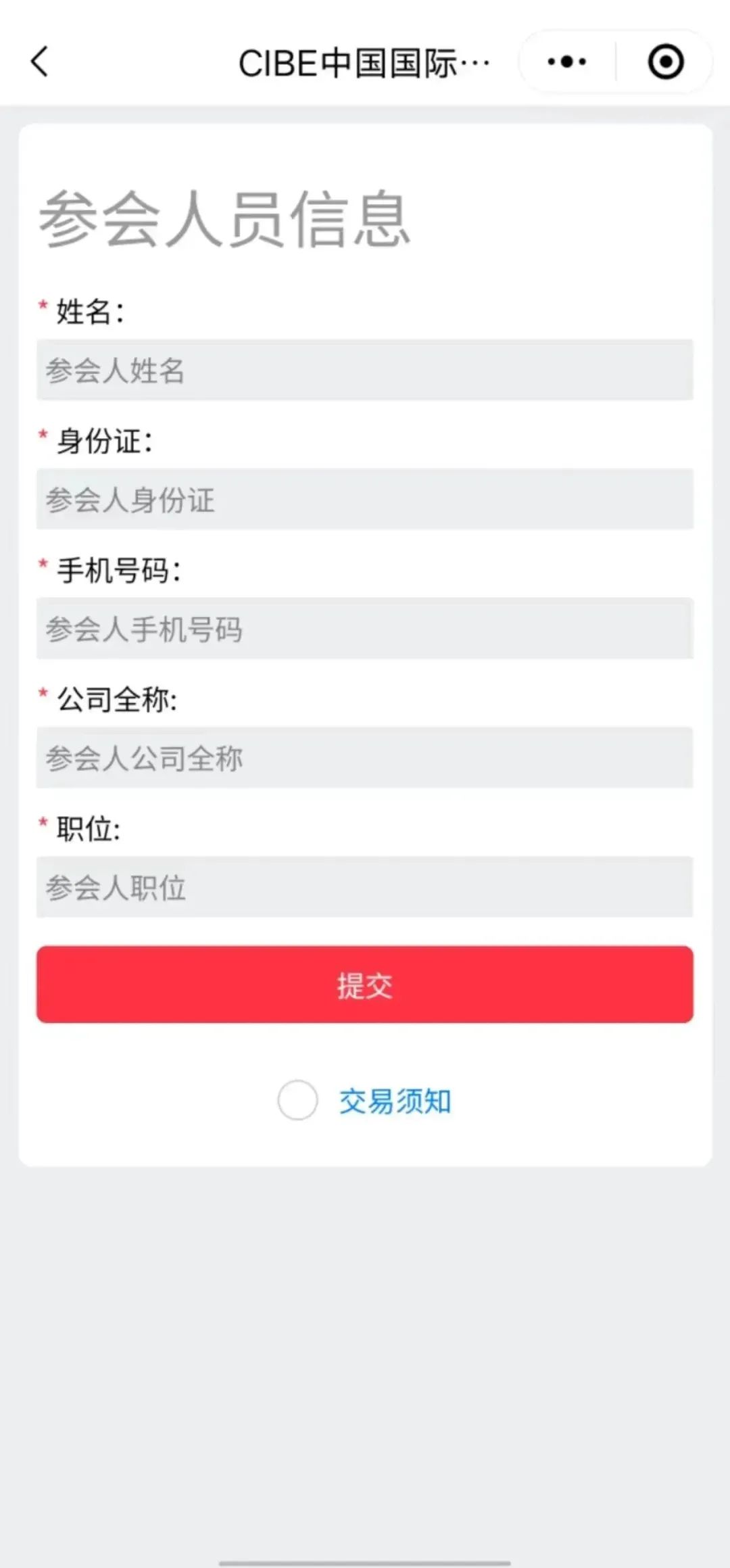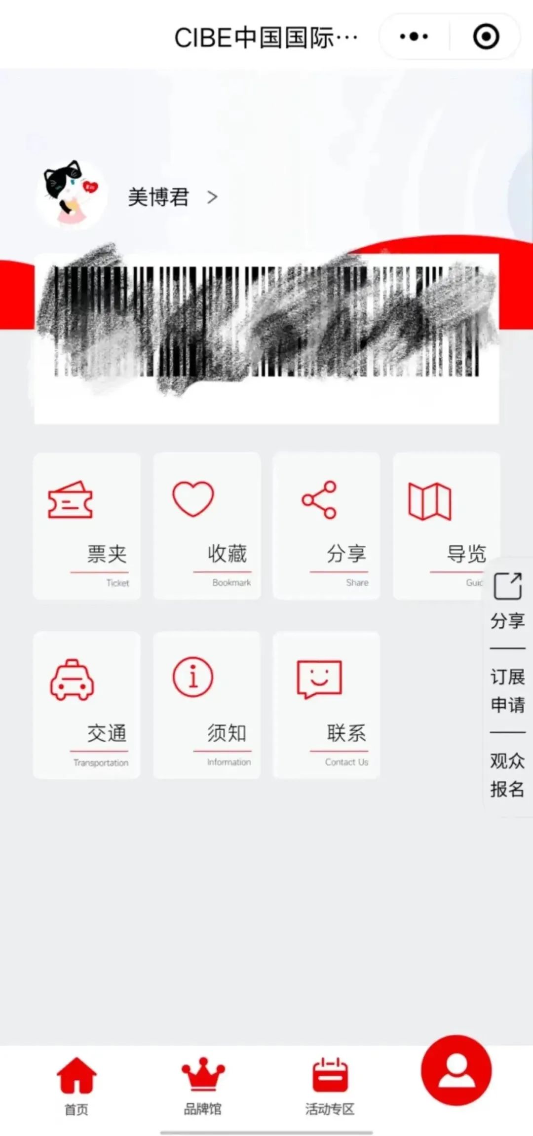 点击小程序右边功能浮窗的【观众报名】栏,进行展会实名预约登记。