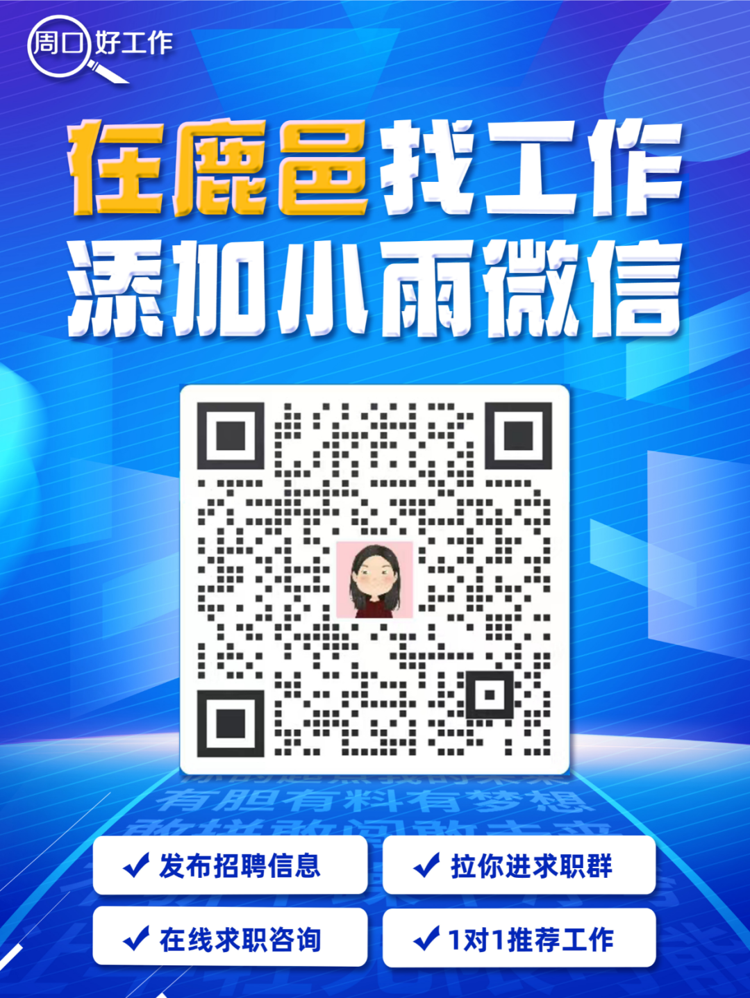 【周口好工作】鹿邑本地的求职招聘平台,添加客服微信在线为您推荐本地好工作,找工作快人一步,拉您进【鹿邑求职招聘工作群】更多岗位等您挑选!