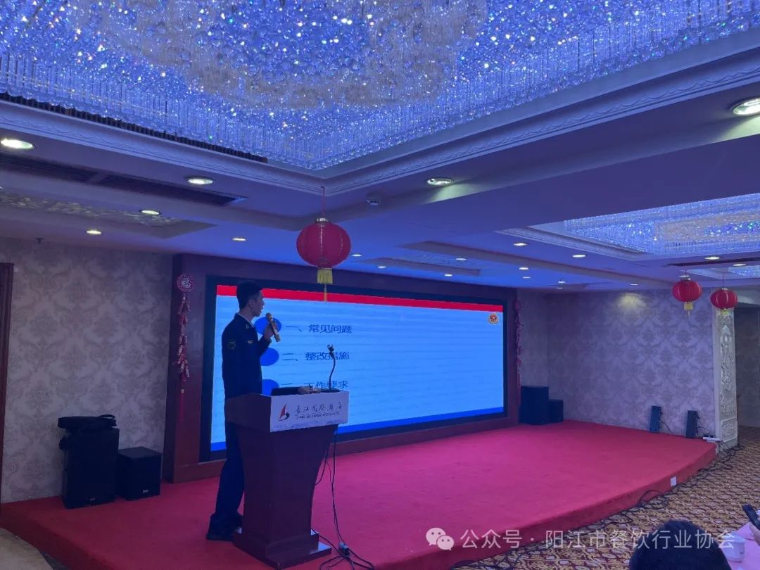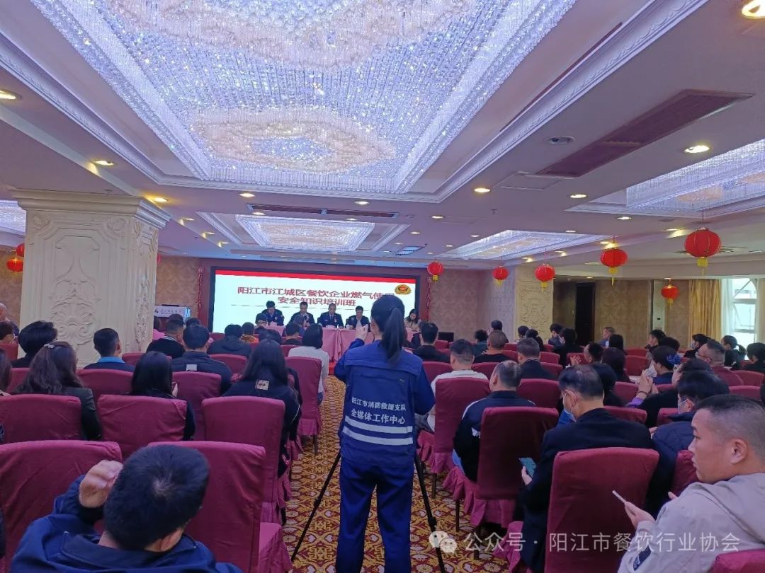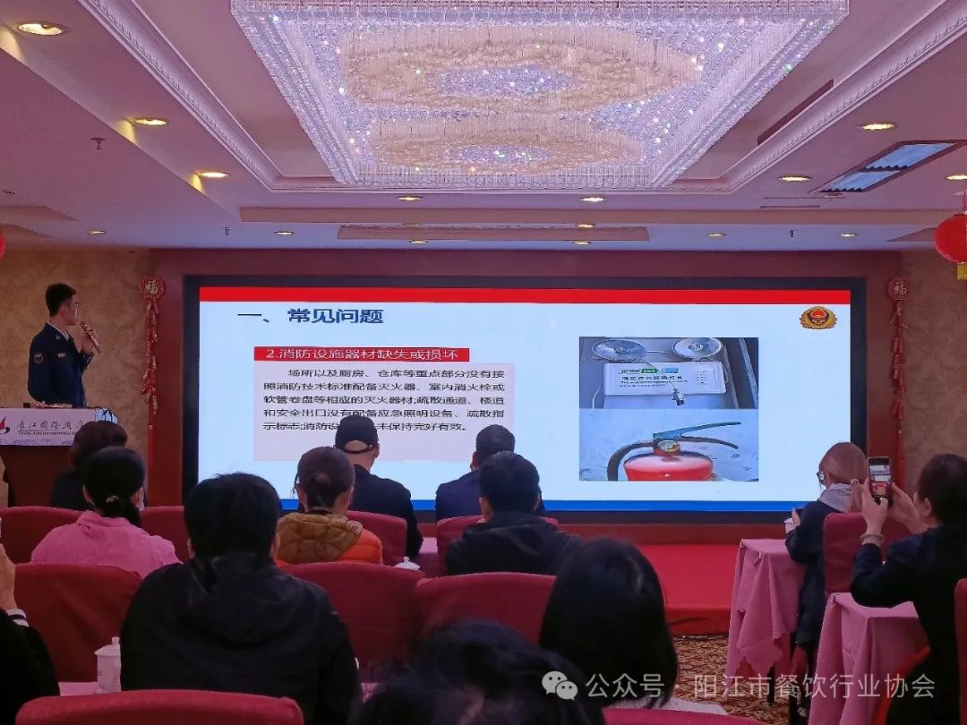 为深刻吸取近期火灾事故教训,进一步推进消防安全集中除患攻坚大整治行动,有效预防火灾事故的发生,确保餐饮行业消防安全形势稳定,全面提升餐饮场所消防安全管理水平。2月23日阳江市餐饮行业协会配合阳江市商务局、市消防救援支队、江城区消防大队、江城区商务局联合召开阳江市餐饮行业消防安全整治集中约谈培训会暨大演练活动。活动现场以消防约谈培训、实操演练相结合的形式展开。本次活动在市餐饮行业协会会长单位:阳江市长江国际酒店举行,共有150多家餐饮企业消防负责人参加了此次培训。