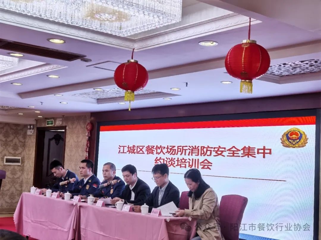 预防为主、生命至上——阳江市餐饮行业协会配合市消防救援支队江城消防大队联合市商务局江城区商务局组织召开餐饮行业消防安全整治集中约谈培训会暨大演练活动