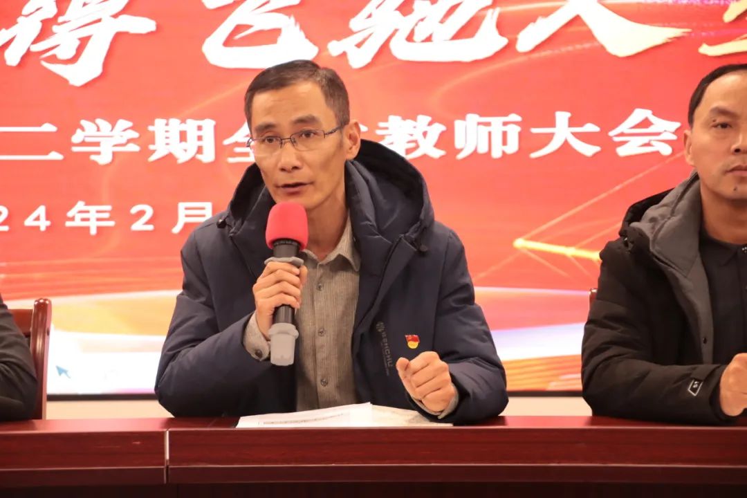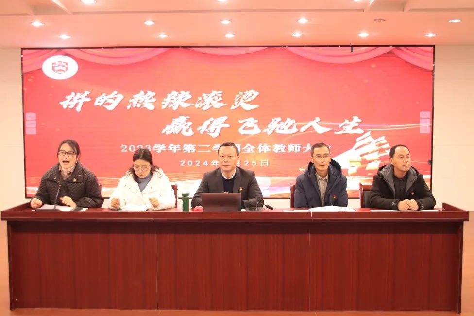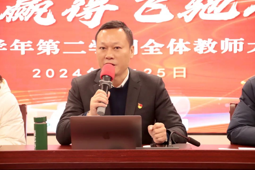 万里春草发,千言桃李旺。新学期的集结号已经吹响,为保证开学工作平稳有序地进行,2月25日上午,浙师大泗门附中在实验楼五楼报告厅举行2023学年第二学期第一次全体教师会。会议由办公室主任谢丽丽老师主持。