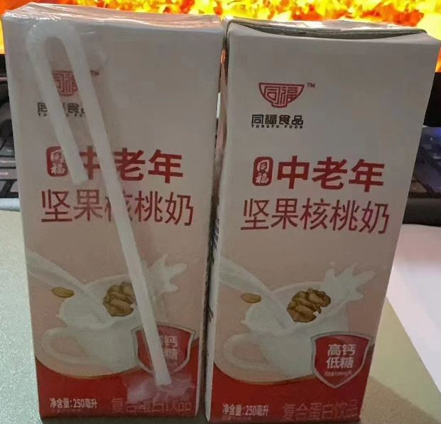 同福中老年坚果核桃奶,3月份出厂,保质期一年,250ml*20盒装,1000箱。