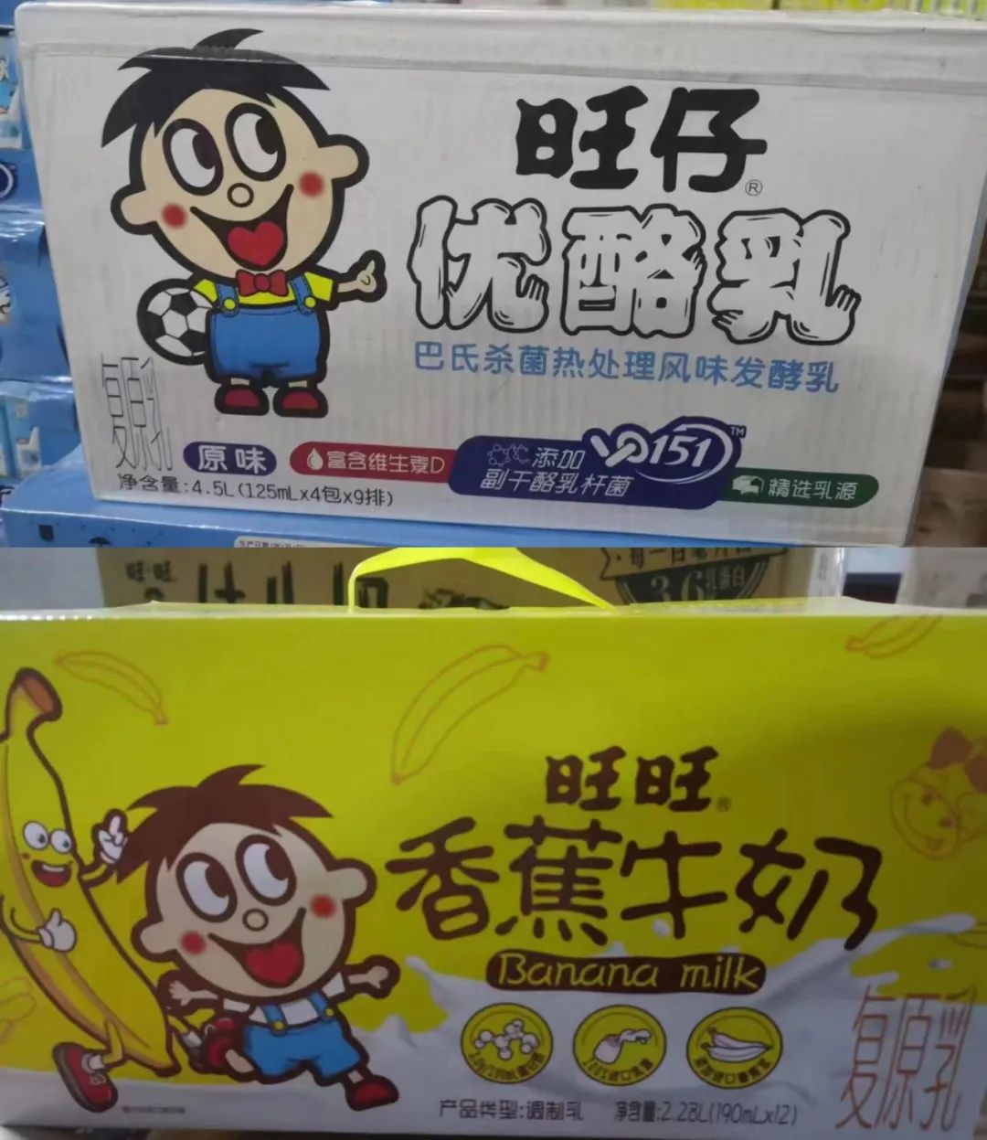 旺仔优酪乳原味,125ml*4盒*9排,到期日2024年1月20日,旺旺香蕉牛奶,190ml*12盒,到期日2024年2月13日,合计,337提。