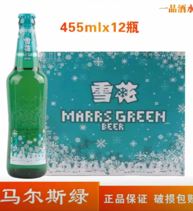 雪花马尔斯绿啤,保质期到24年2/3月份,455ml*12瓶,700箱。