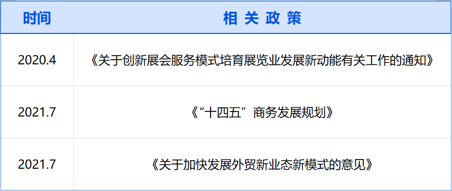 我国对于会展行业的重视程度逐渐提升,近两年陆续出台政策,推动会展业稳步发展。
