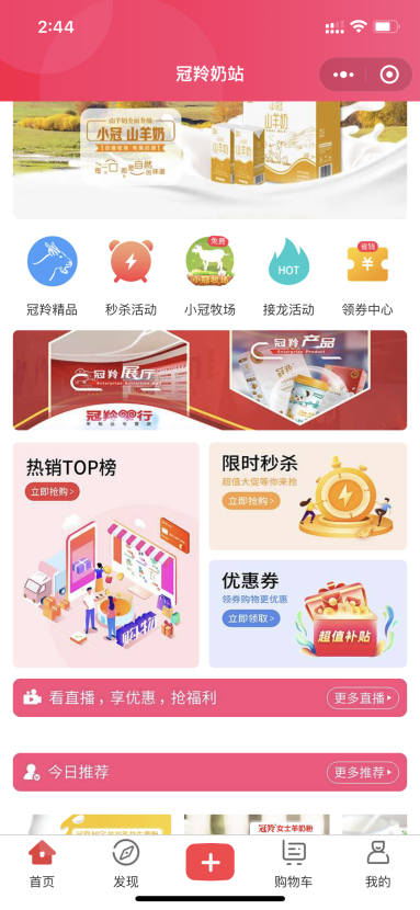 会员群,是用户与品牌链接的第一步。在成熟社群的引导下,品牌可以精准连接到目标客户群体,用更低成本获得更高价值,拉近品牌和客户之间的关系,促成销售转化。冠羚深耕社群,用数字引流,冠羚奶站小程序,线上直播,小黄车销售,培养顾客线上下单、在线成交习惯,通过小程序传播推广产品、维护用户,帮助用户感知品牌温度、刺激产品销售,激发用户对产品的粘性、培养超级用户。