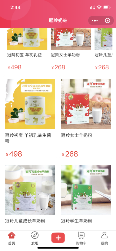 冠羚奶站,一站式羊奶消费互动体验平台,打通冠羚羊行与顾客接触的前端窗口,延伸羊行的消费群体,优化羊行的消费体验,重塑羊行的消费业态。冠羚奶站小程序兼具收新引流、基础教育、文化熏陶、客户服务、团购秒杀、产品分销、会员管理、员工管理等功能。既可以为消费者提供便捷的消费体验,也可以为全国各地品牌运营商赋能业绩增长。