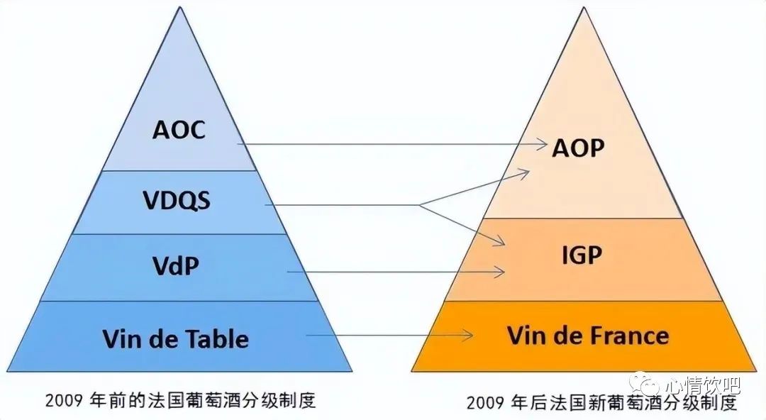 法国葡萄酒的等级制度更广为人知,2009年改革后,由原来的4个级别变为3个级别。