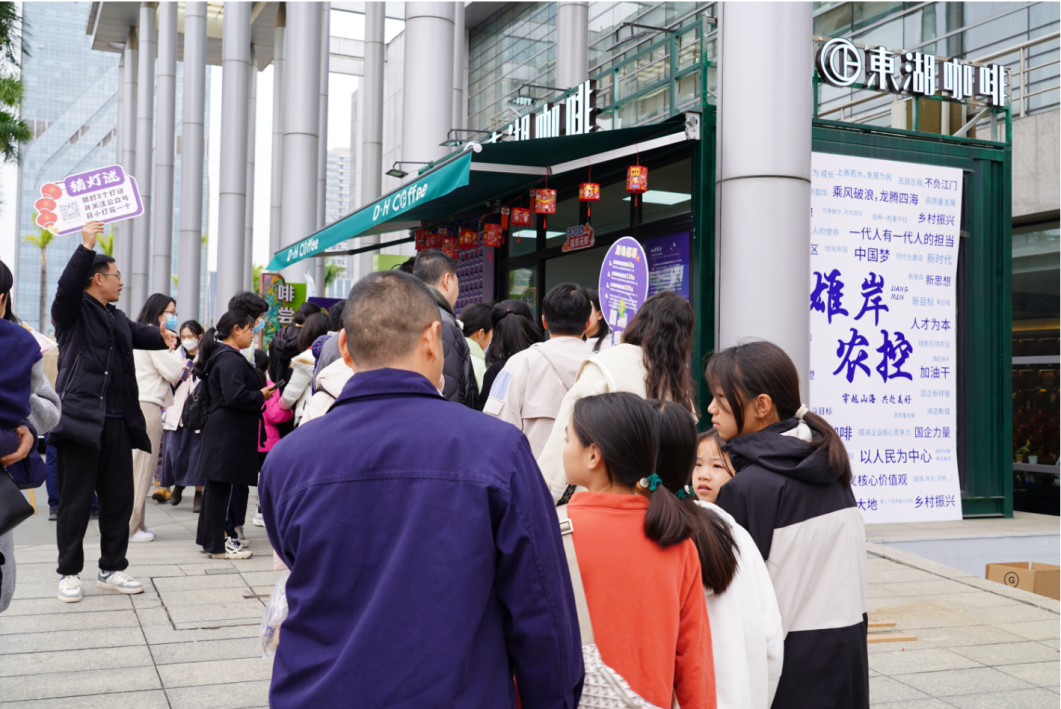 雄岸咖啡的展位吸引了众多咖啡爱好者和消费者的关注,其中还不乏“大咖”的身影。市民和游客在品尝咖啡的同时,对雄岸咖啡产品的口感、风味等方面表示认可,纷纷扫码下单购买。咖啡文化周适逢中国传统节日元宵节,雄岸农控集团在展位设置了丰富的互动环节,除咖啡品鉴、制作技艺展示之外,还举行元宵节猜灯谜、DIY灯笼活动,当元宵节遇上咖啡节,咖啡+元宵灯笼受到市民和游客的热捧。